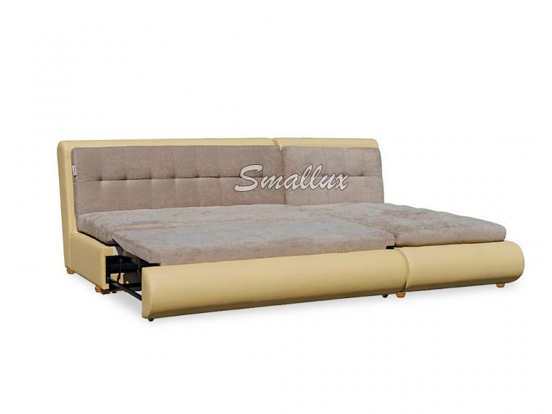 Диван габаритный (2,55Х1,85Х0,9 м) и может поместиться не только в большом зале, но и маленькой комнате. Его основной функционал заключен в том, что днем это простой обычный диван, а ночью - просторное спальное место (2,5Х1,4 м). Это значительно упрощает решение проблемы постоянно не хватающего лишнего места. Раскладывается диван при помощи специального механизма "Дельфин", так что раскладывать его можно каждый день без опасения того, что он сломается.