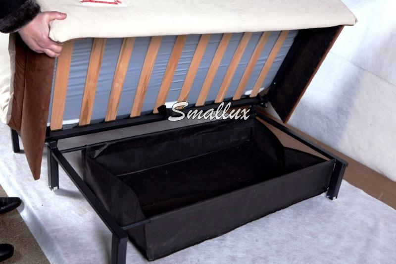 Короб для белья: расположен под сидением и изготовлен из ДВП и ткани «спанбонд»
